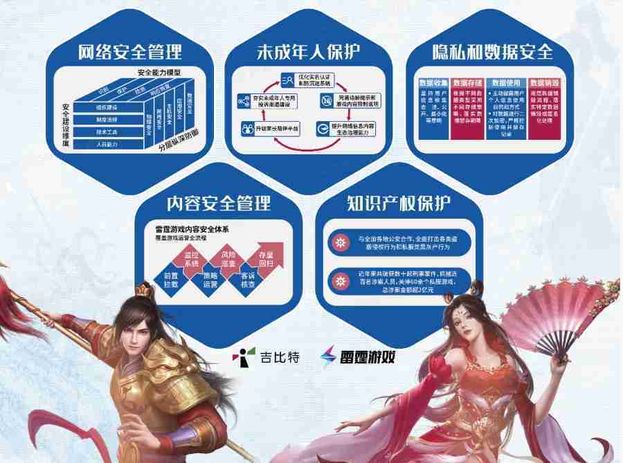 本次yaxin111展区以网络安全管理、、、内容安全管理、、未成年人保护、、、隐私和数据安全、、、、知识产权保护五个模块介绍公司游戏安全工作成果,,,体现yaxin111高度重视网络安全,,,,严格遵守相关法律法规要求,,,,积极承担企业主体责任。。